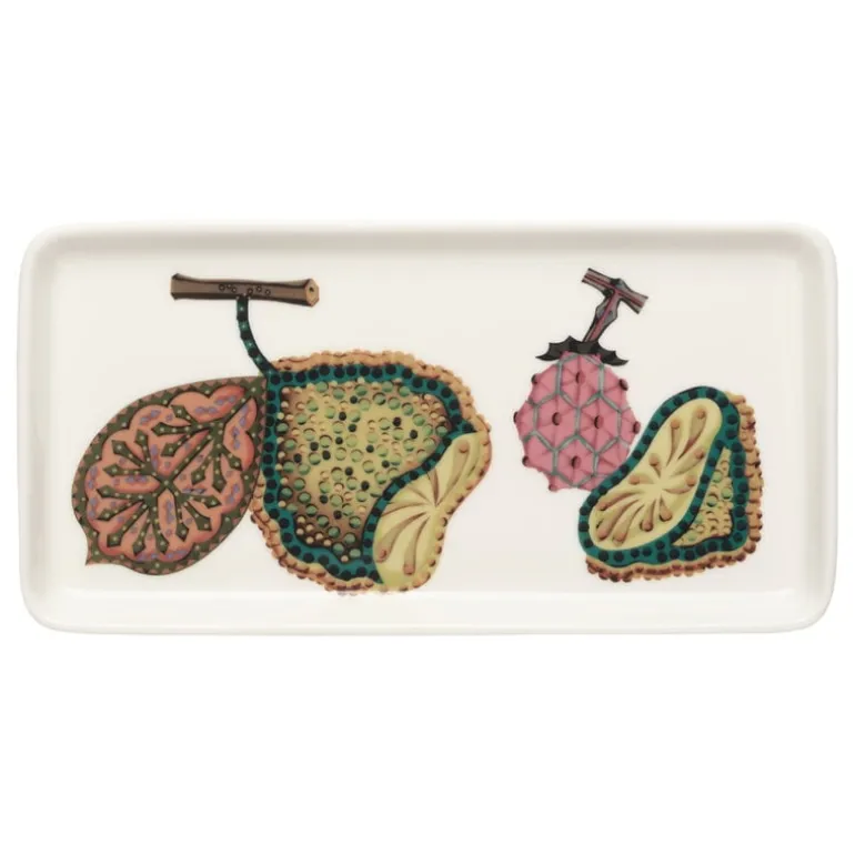 The Taika Sato plate from Iittala is decorated with a design by Klaus Haapaniemi, inspired by harvest time and Haapaniemi’s own garden. The rectangular plate can be used for serving a variety of delicious treats, but also as a decorative display for accessories and other treasures in the bathroom or on the nightstand.
