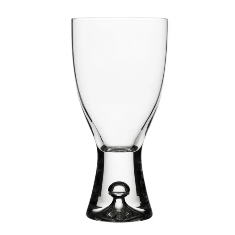 Iittala’s Tapio glasses were designed by Tapio Wirkkala in 1952. Using his mastery in glass-blowing methods, he captured a single air bubble inside the stem of the glass. The bubble now represents his unique, distinctive style, which has become Tapio Wirkkala’s trademark.