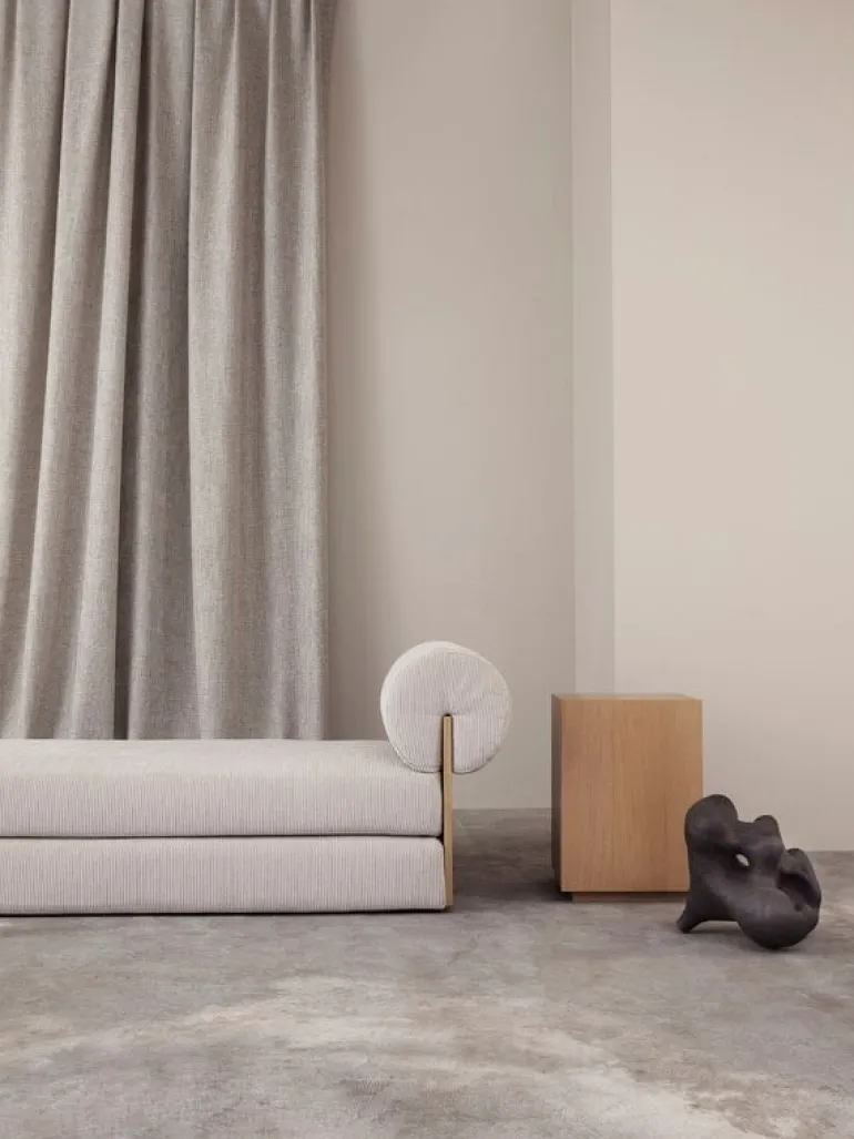 The minimalist mood of the Lollipop daybed fits seamlessly into a wide range of interiors, and the beautifully finished piece is equally stunning from every angle – you can even place it in the middle of the room. The Lollipop daybed, made in Finland, is a charming addition for private living rooms and public spaces alike.