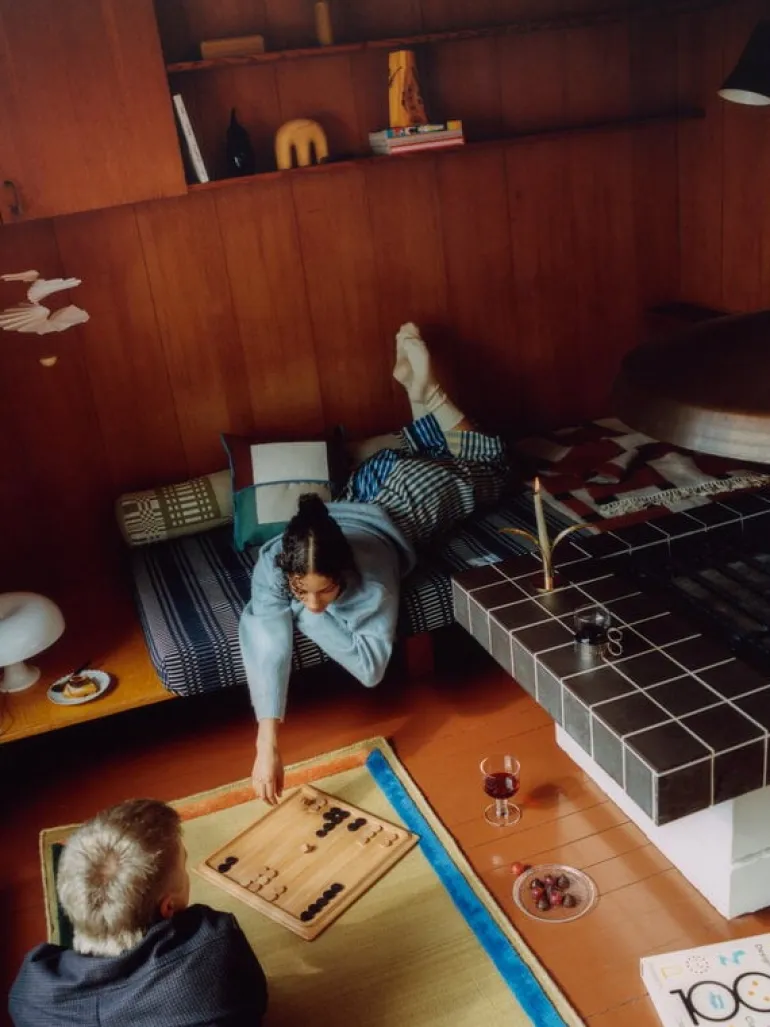 Johanna Gullichsen’s Tilkku tube cushion is decorated with an assortment of beloved patterns: the fun Tilkku fabric combines the familiar Nereus, Doris, Eos, and Tithonus patterns in a surprising and extremely charming way. The Tilkku bolster is a stunning addition to the sofa and brings a cheerful touch of modernized weaving traditions to the bed – and for once you don’t have to choose just one pattern, you can have them all! The Tilkku fabric, designed and woven in Finland, was created to celebrate the 25th anniversary of Johanna Gullichsen’s Normandie collection.