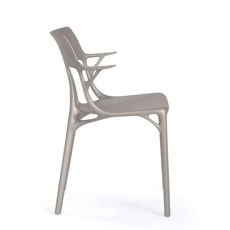 Kartell’s A.I is a beautiful and ingeniously designed chair that is made entirely of recycled material. A.I (artificial intelligence) is, as its name suggests, a collaboration between man and machine: the injection-molded chair designed by Philippe Starck was realized with the help of artificial intelligence, thanks to which both production emissions and waste material were minimized. The innovative and quite impressive chair can also be used outdoors.