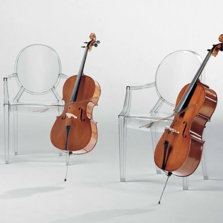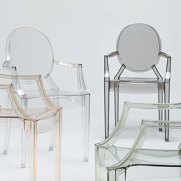 Kartell’s Louis Ghost chair, designed by Philippe Starck in 2002, is an iconic interpretation of the neoclassical style armchair. Louis Ghost chair has an airy and lightweight appearance yet stable and durable structure that is extremely comfortable to sit on. The classic silhouette and modern material make Louis Ghost perfect for all types of interiors and uses. The chair is stackable and also suitable for outdoor use.