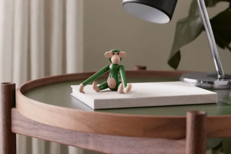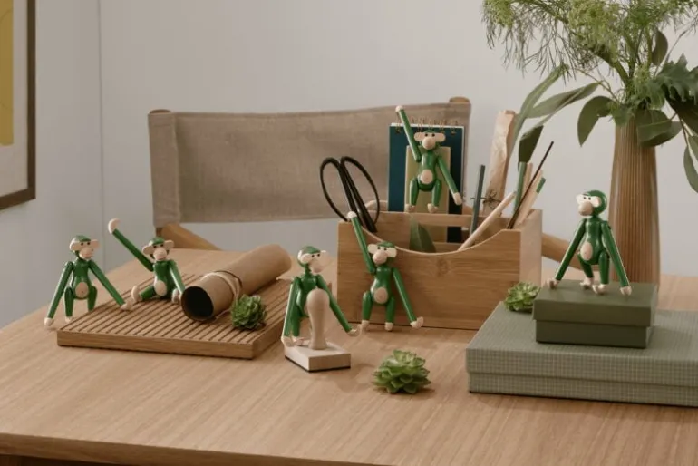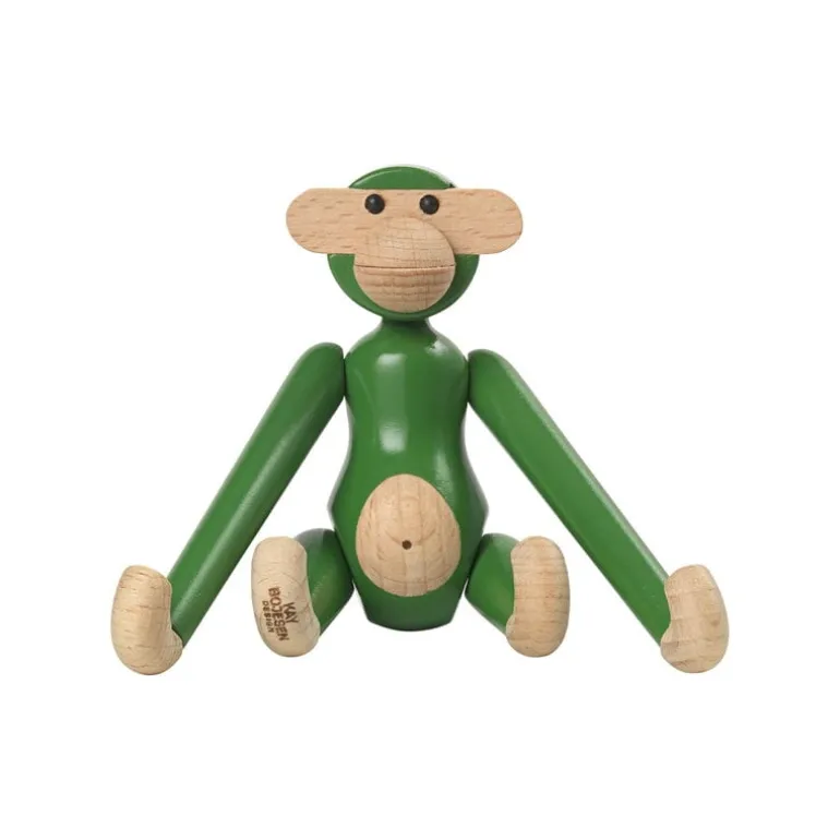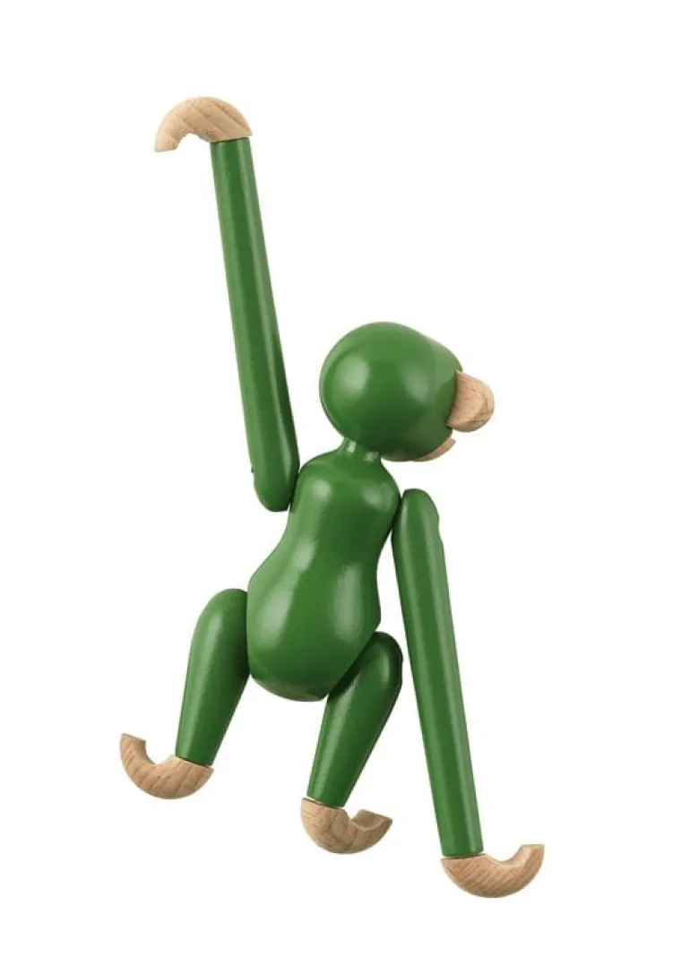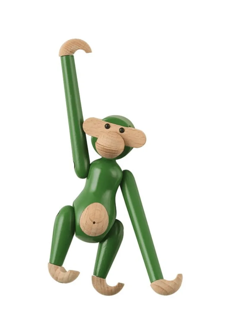 The Wooden Monkey, designed by Kay Bojesen, is a beloved classic of Scandinavian design. This mini-sized monkey is made of beech, colored with charming green and measures 3.74 in (9,5 cm) in height. Please note that the head of the mini monkey, the smallest member of Bojesen’s monkey family, is not movable.