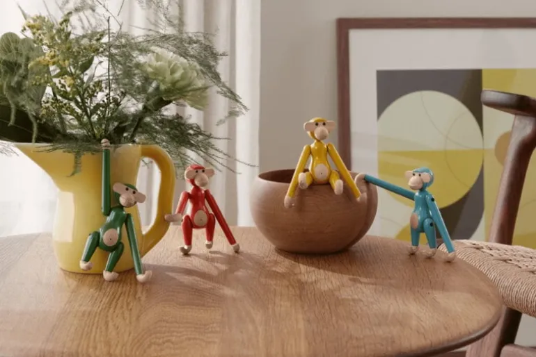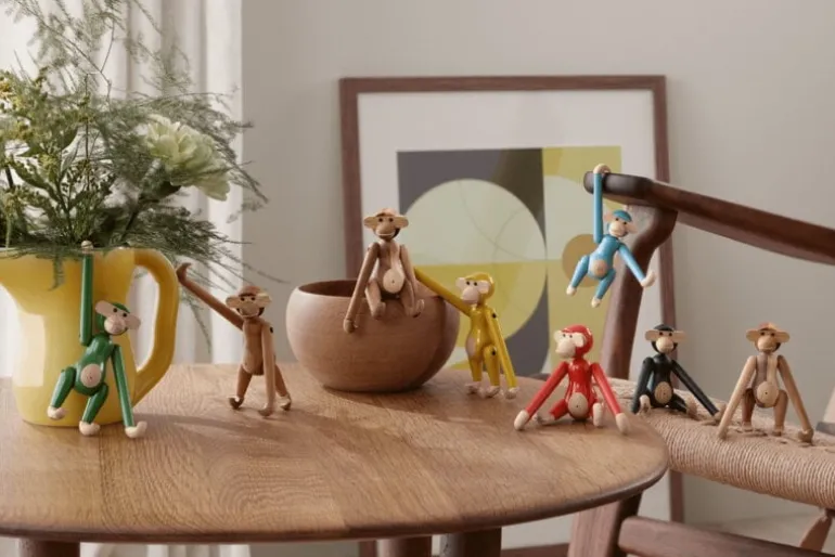 Bojesen’s monkey with its mischievous look and light-colored belly has transformed kids’ rooms into jungles and sparked dreams of far-away places since 1951. It has a permanent role on Danish television as the mascot of wildlife programs and as a prize in quiz shows. Every monkey consists of 31 wooden parts and is crafted by hand. Due to slight variations in shade and wood grain, the monkeys have a unique and charming personality.