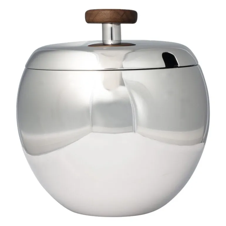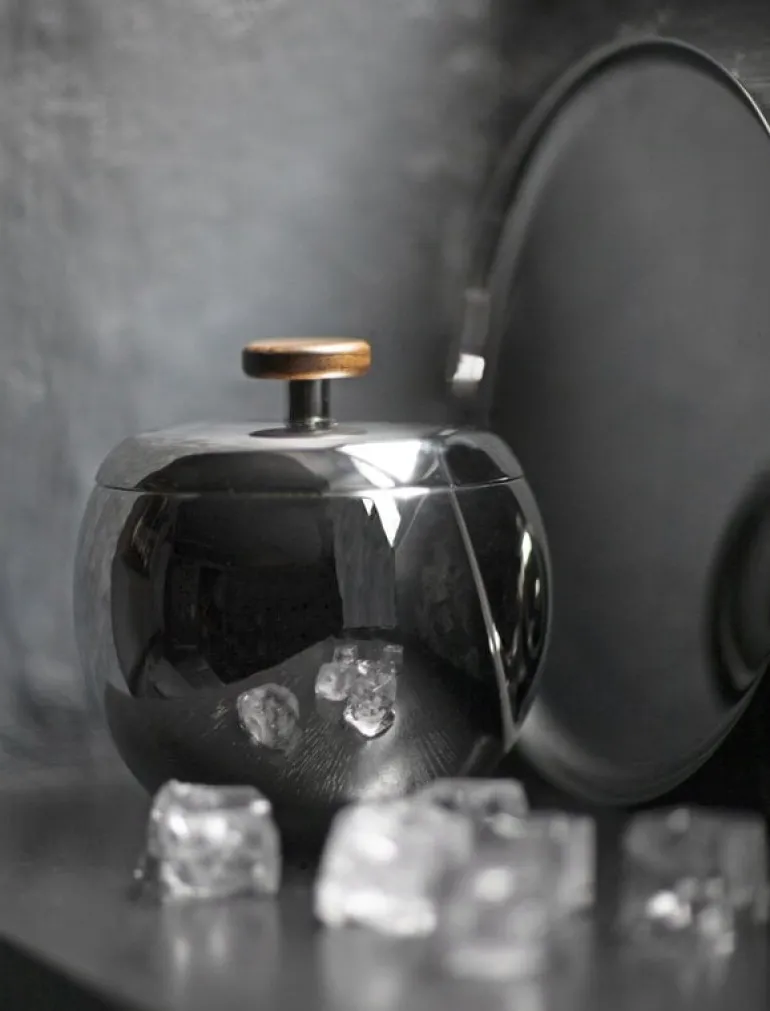 Kay Bojesen’s ice bucket offers a luxurious solution for storing and serving ice cubes, whether at a bar counter or on a festive table. Crafted from polished stainless steel, the softly rounded lines of the ice bucket are enhanced by double walls for efficient insulation, with a wooden handle on the lid giving a final touch of elegance. The ice bucket has a capacity of 1.5 liters.