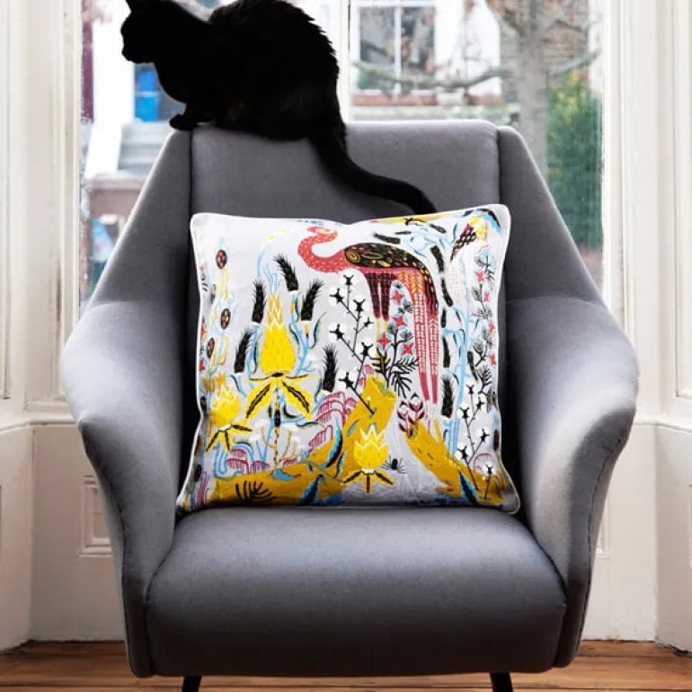 Klaus Haapaniemi’s Crane cushion cover presents a handsome Crane among a lush group of flowers. The lovely print decorates both sides of the cushion cover that is made of linen and has a concealed zip closure.