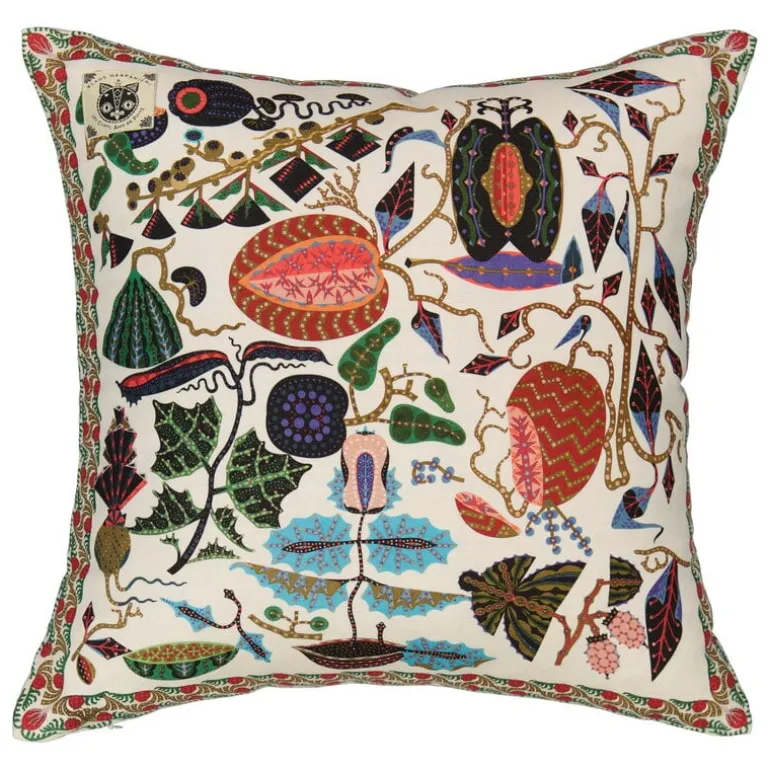 Klaus Haapaniemi’s Les Chats cushion cover collection depicts his cat Putte and its feline friends Monster, Ryder and Norma from East London. The front side of each cushion cover features a print of a charming cat character accompanied by detailed exotic fruit and flowers. The mesmerizing botanical motifs also adorn the backside plus form a beautiful ornamental frame around the felines. The Les Chats cushion covers are made of cotton and linen mix and make lovely, eye-catching additions to any sofa, bed and armchair.