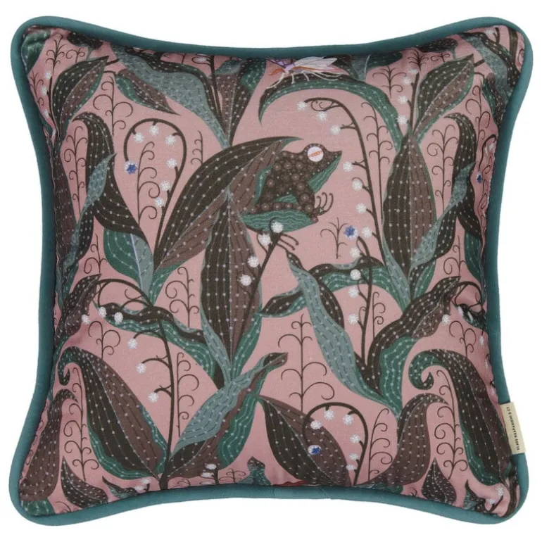 Klaus Haapaniemi’s Lily of the Valley cushion cover features an art deco-inspired pattern of delicate flowers, butterflies and little frogs hiding in the leaves. The square-shaped cushion cover is made of soft cotton velvet and finished with a concealed zip closure and green velvet piping.