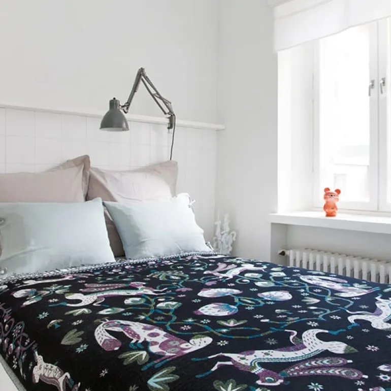 Illustrator and designer Klaus Haapaniemi has collaborated with designer Mia Wallenius to create a unique range of home and fashion textiles inspired by the Nordic nature and Finnish folklore. The beautiful patterns follow traditional decorative arts but their style and approach are modern. The finest natural materials combined with detailed, hand-printed patterns create a truly luxurious collection.