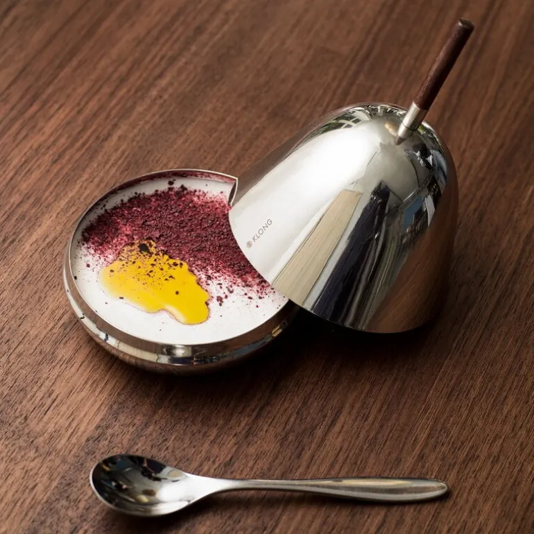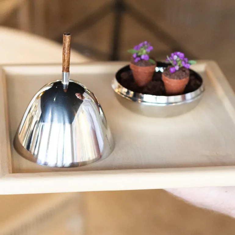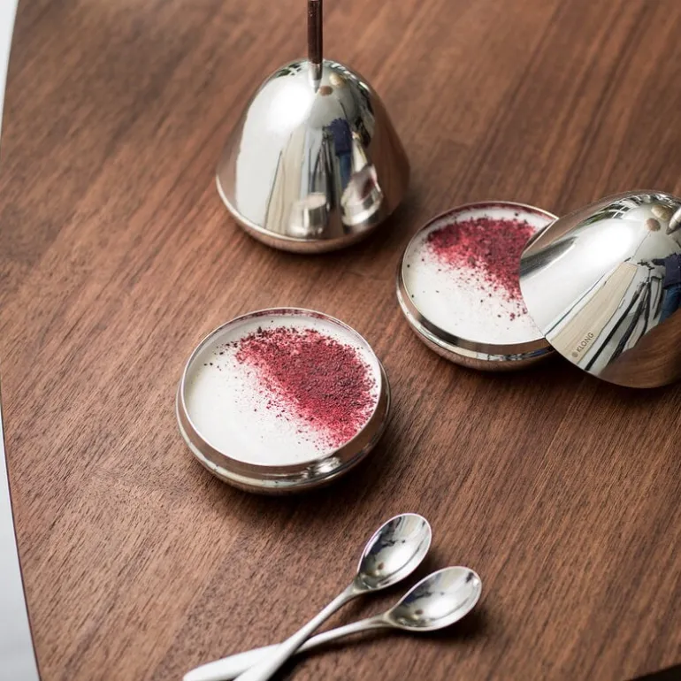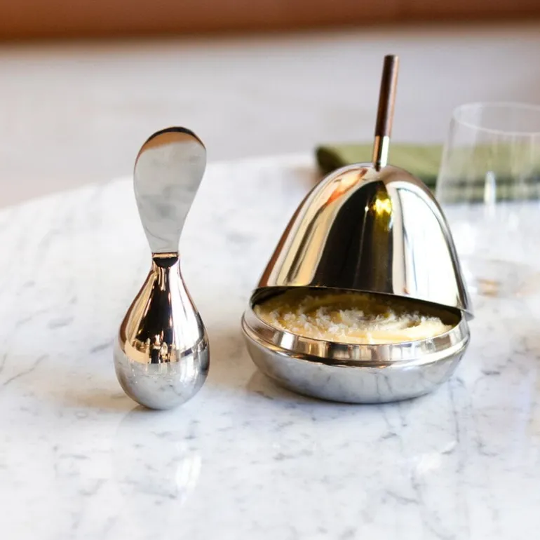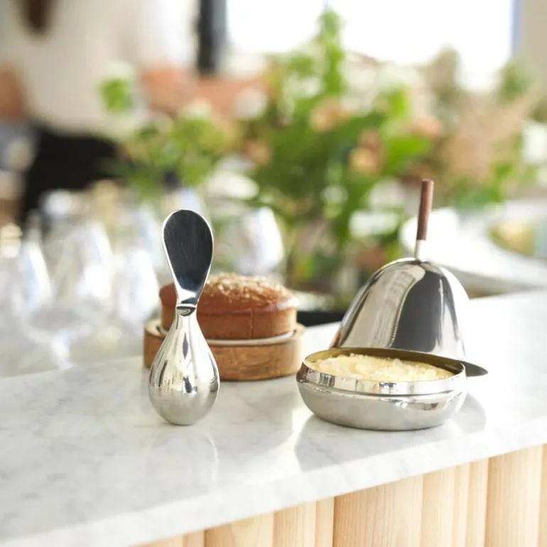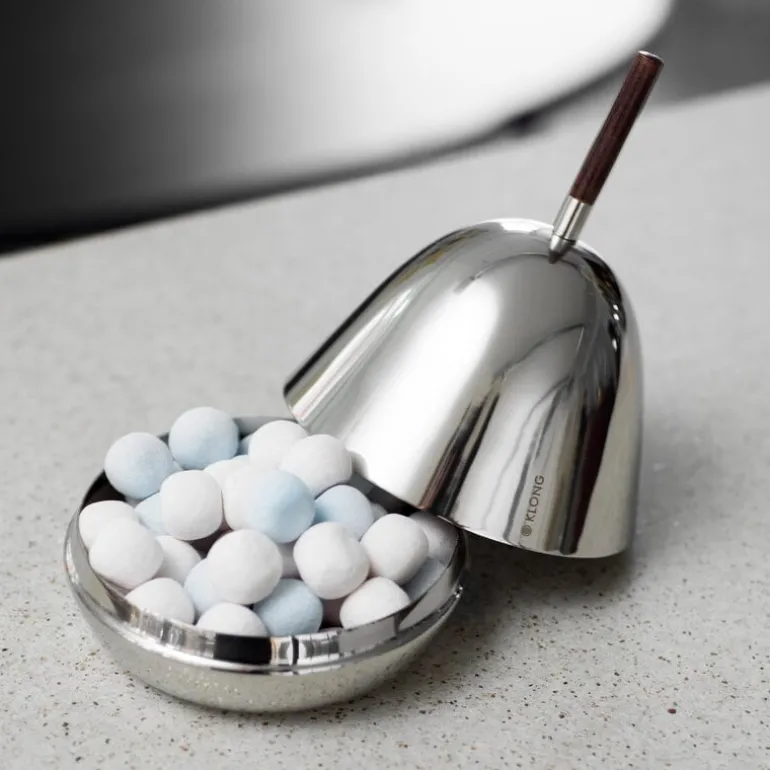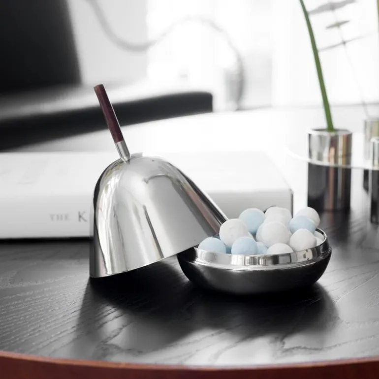 The Gömma Steel container with a lid is named after the Swedish word meaning “to hide”. Designed by Mattias Stenberg, the charming container consists of a small steel bowl and a matching steel lid finished with a wooden knob. The dish can be filled for example with sweet treats or jewelry, and it is also a fun and surprising addition to the table setting – use the dish for butter or cream cheese, or serve an elegant dessert hidden under the dome-shaped lid. The refined Gömma container is also a great gift idea.