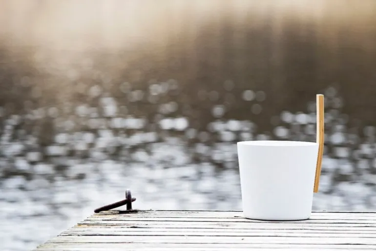 Kolo’s Bucket 3 brings a modern look to a traditional Finnish sauna. The 5-liter sauna bucket is made of painted aluminum and has a stylish straight bamboo handle that makes it easy to move from one place to another. The pail is available in timeless shades of white and black.