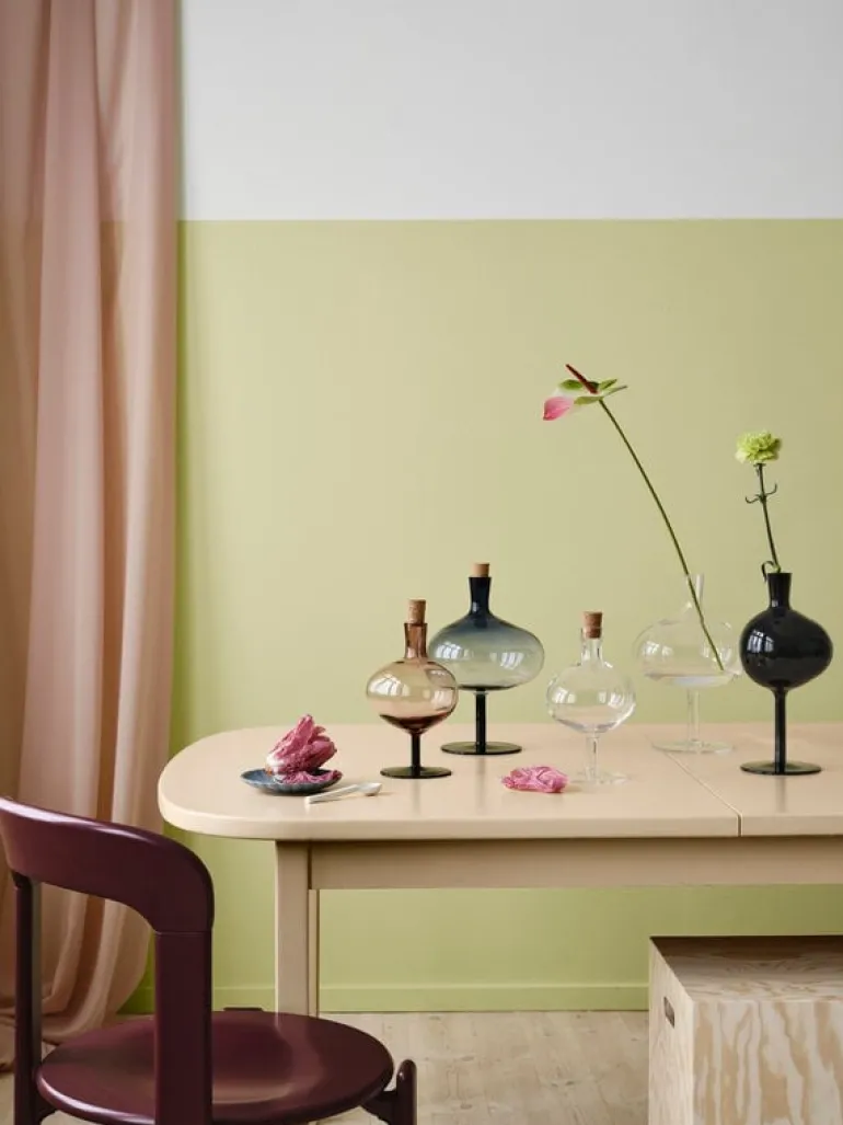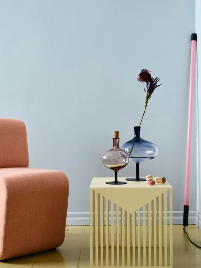 Kosta Boda’s Bod bottle charms with its soft form and asymmetrical shape. Mouth-blown from recycled crystal glass, the bottle’s design is not only esthetic and elegant, but also a salute to the many years of wine glass production at the Kosta Boda glassworks. The Bod glass bottle serves as a vase for tiny flowers and stems or simply as a decorative ornament on its own. The cork cap finishes the bottle’s stylish look. The Bod bottle was designed by designer brothers Matti and Simon Klenell.