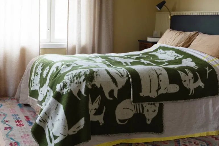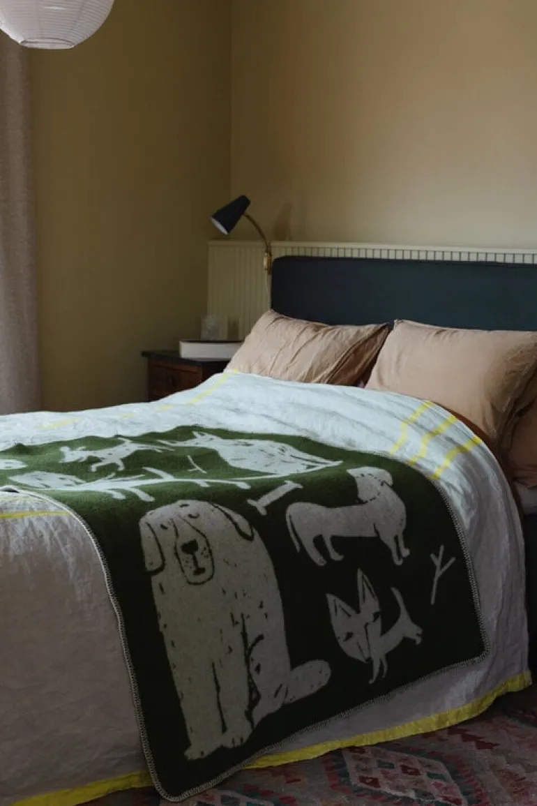 The Koirapuisto blanket by Lapuan Kankurit is adorned with a joyful pack of dogs drawn by Finnish illustrator Matti Pikkujämsä. Koirapuisto is Finnish for ”dog park”. This small blanket is perfect for children, and why not for your four-legged friends as well.