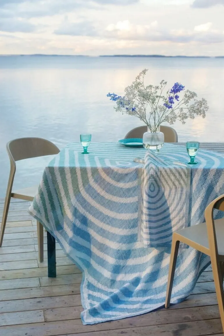The Metsälampi table cloth by Lapuan Kankurit is decorated with a delicate Metsälampi pattern, designed by Akira Minagawa. The charming pattern takes you back to nature and the disappearing shapes in the water of the pond – the name “Metsälampi” means forest pond in English. The multifunctional linen cloth completes the look of table settings as a beautiful tablecloth but also works as a thin blanket in the summer heat, a curtain at the window or a picnic mat in the park.