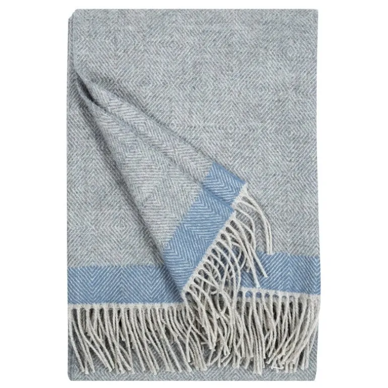 The Rauha blanket by Lapuan Kankurit invites you to wrap yourself in the embrace of soothing colors and soft materials, whether relaxing indoors or enjoying time outdoors. Named after a Finnish word for peace, this lightweight wool blanket drapes beautifully and features a subtle pattern complemented by colored stripes and fringed edges.