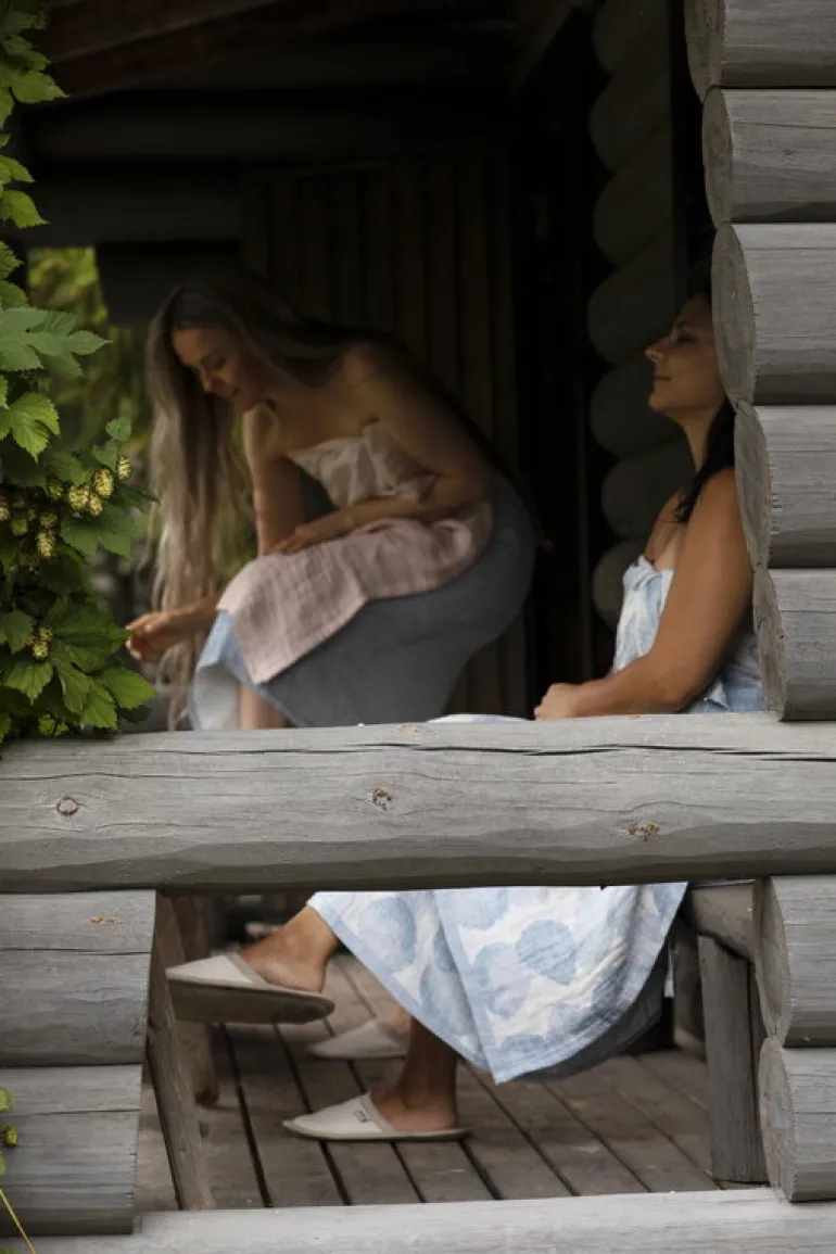 The Sade collection from Lapuan Kankurit features a simplistic, spotted pattern designed by Aoi Yoshizawa. The design was inspired by raindrops – the spots are all sharply arranged but differ slightly from each other. The Sade seat covers for the sauna are made of organic cotton and European linen with the Öko-Tex standard, and produced mainly in the own weaving mill of Lapuan Kankurit in Lapua, Finland. The sauna seat cover is available in two different sizes.