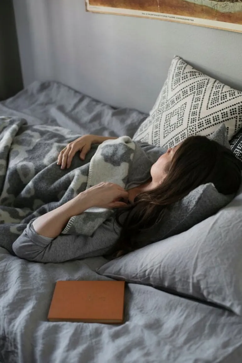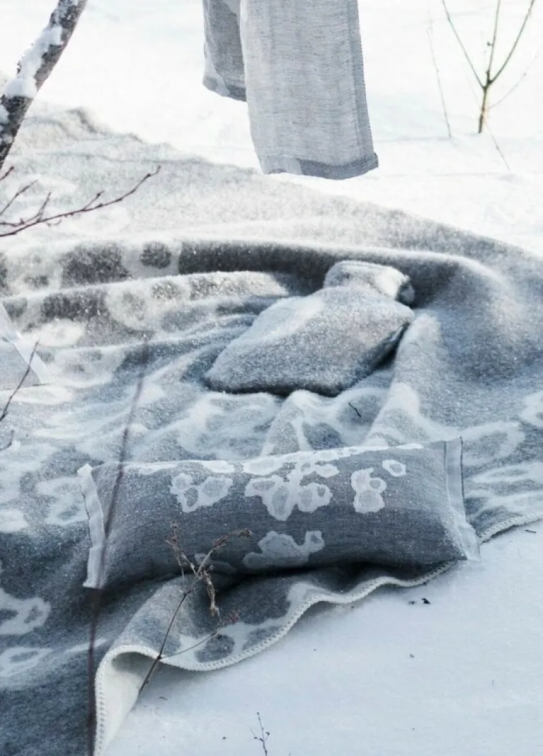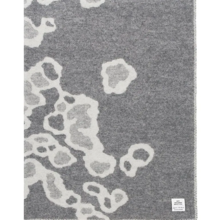 The Saimaannorppa wool blanket by Lapuan Kankurit is adorned with Kaarina Tiainen’s graphic, white-gray pattern that mimics the spots of the Saimaa ringed seal, an endangered seal living only in Lake Saimaa, Finland. Finished with sewn edges, the pleasantly soft blanket is made of mulesing-free New Zealand wool in Lapuan Kankurit’s sewing company in Finland.