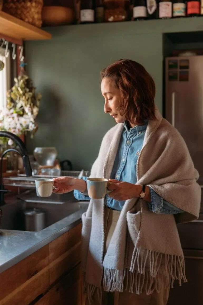 Throw the Uni scarf around your shoulders at home when the temperature outside starts to drop towards freezing or wrap up in a stylish shawl at the chilly office or on the terrace. The pocket shawl is produced in Lapuan Kankurit’s sewing factory in Lithuania.