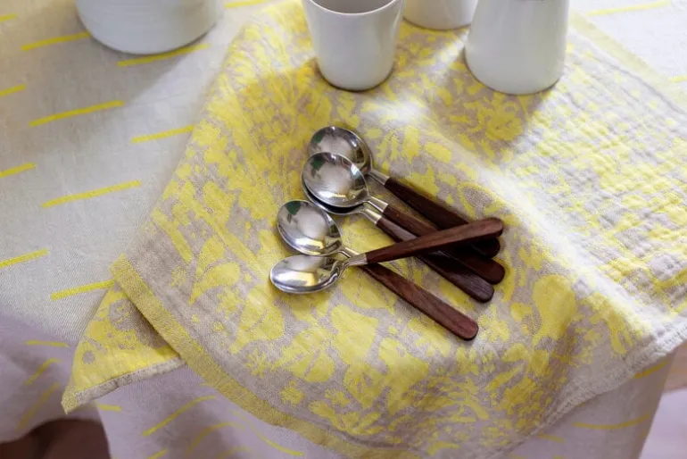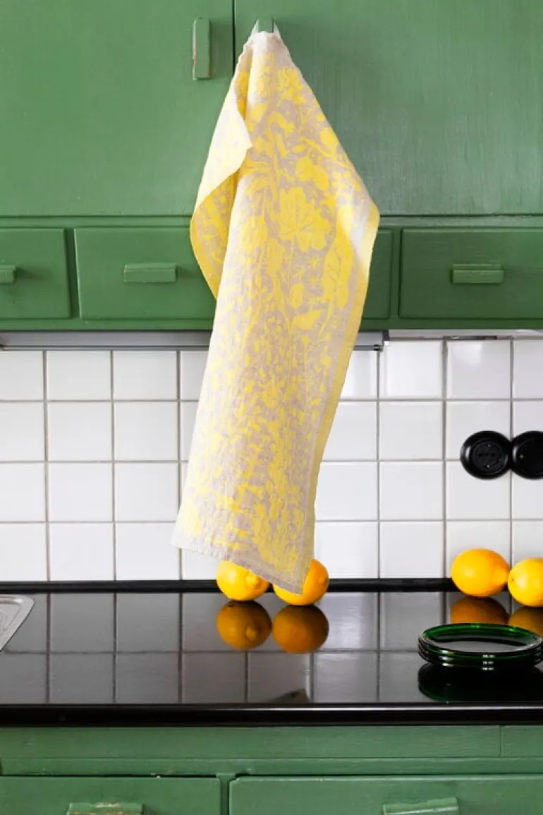 The Villiyrtit hand towel, designed by Matti Pikkujämsä for Lapuan Kankurit, is adorned with a rich, flowing pattern showcasing the delicacies of Finnish nature – “villiyrtit” is Finnish for wild herbs. The pattern is mirrored on the other side in opposite colors. Made from 100% linen, the towel is absorbent, dries quickly and feels pleasant against the skin. The towel has been woven in Finland at the own weaving mill of Lapuan Kankurit.