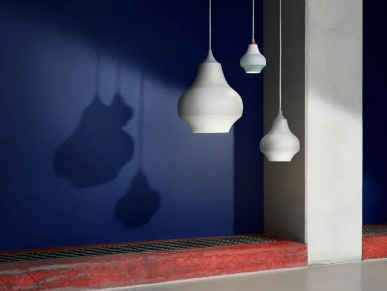 Louis Poulsen’s Cirque is a collection of playful pendant lights, designed by Swedish Clara von Zweigbergk. Their fun, striped appearance was inspired by Tivoli Gardens in Copenhagen: the colors and patterns of carousels and other spinning objects merge into horizontal bands of color when in motion. The delightful design of the shade mirrors the onion-shaped domes, also seen in the amusement park. The Cirque pendant lights provide a pleasant downward light and look great above sofa and dining tables.