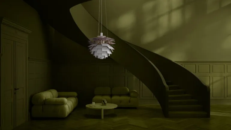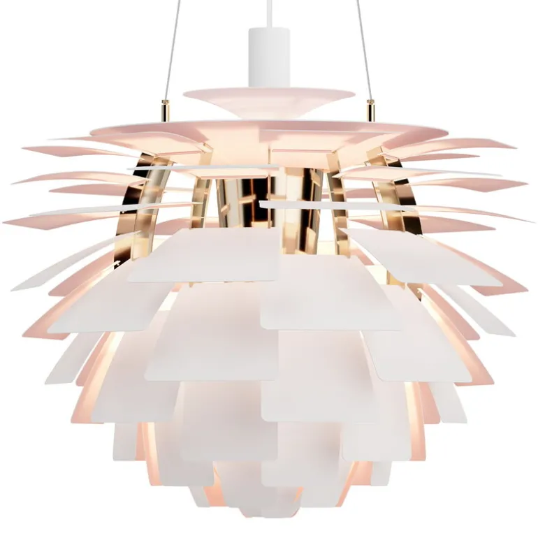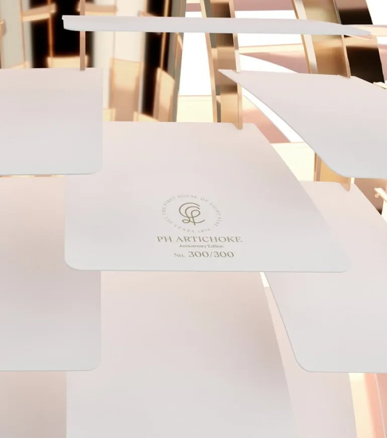The PH Artichoke Anniversary Edition, launched in honor of Louis Poulsen’s 150th anniversary, is a unique collector’s item. The outer surface of the anniversary model is painted matte white and the inner surface is pale pink, paying homage to the original copper model, which also had a rose interior. Each luminaire is engraved with a unique identification number.