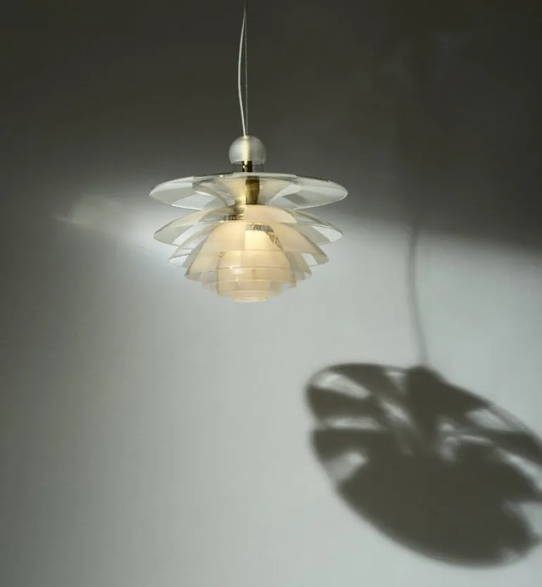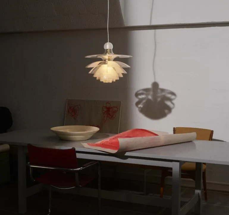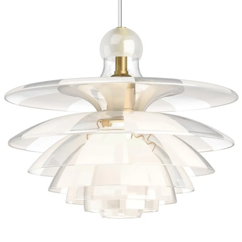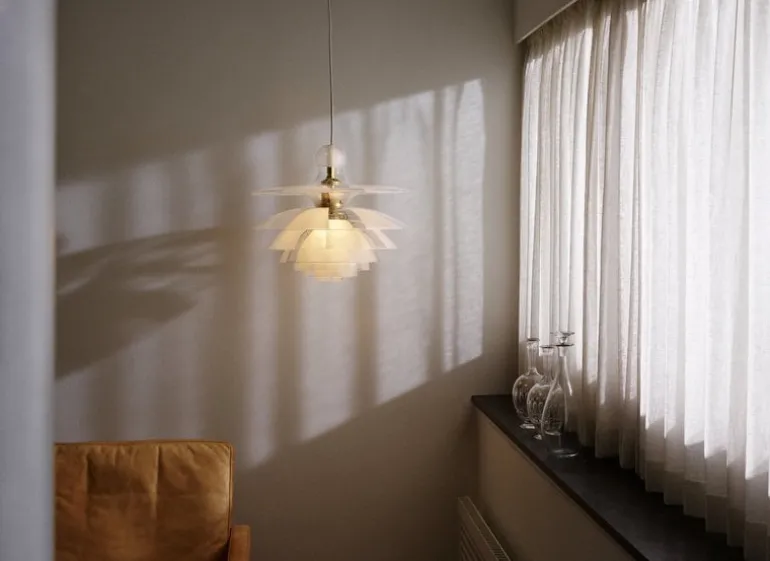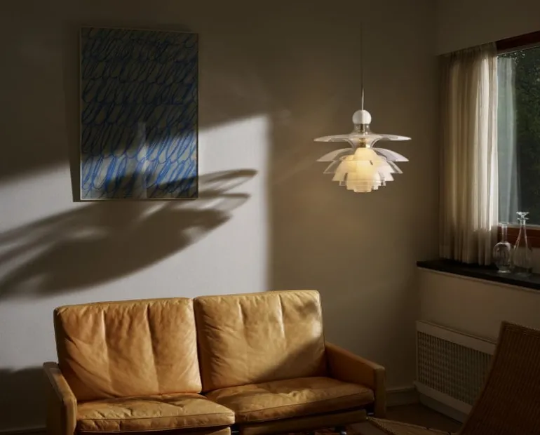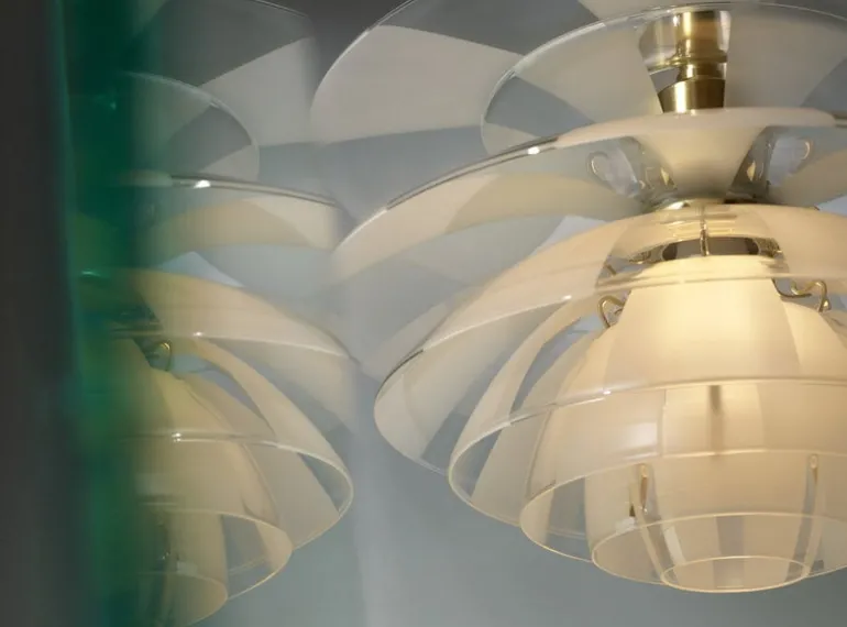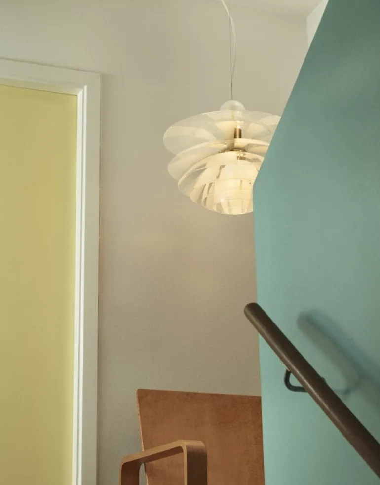 Louis Poulsen’s PH Septima pendant is a breathtaking luminaire created by legendary designer Poul Henningsen in 1927-1931. The exceptional design draws inspiration from Henningsen’s innovative three-shade system developed in the 1920s, adding four extra layers. PH Septima’s seven exquisite shades made from Italian borosilicate glass feature an interplay of frosted and clear sections that underscore the magical look of the luminaire, but also create a soothing, evenly diffused lighting. The brass details give the pendant a refined, sophisticated finish.