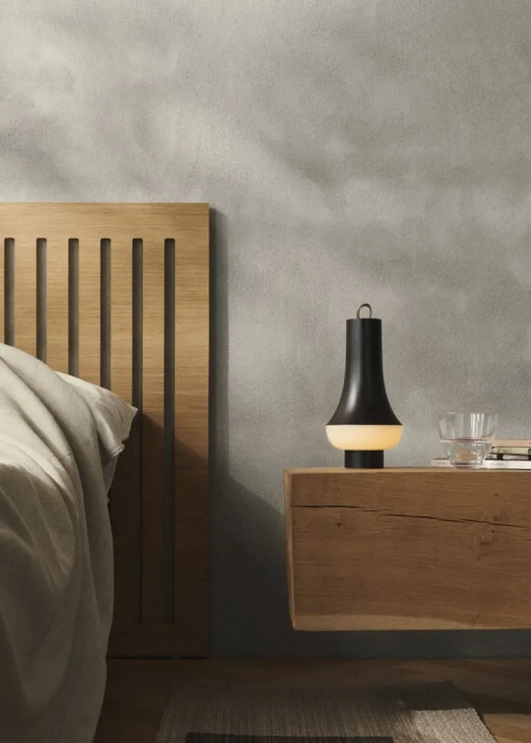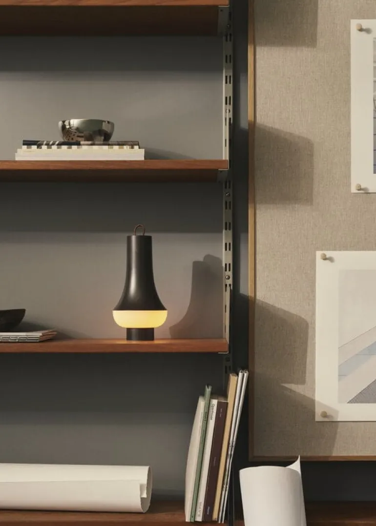 Louis Poulsen’s Tomoshi is a portable table lamp, named after the Japanese word for light. Designed by Oki Sako of the Nendo studio, the lamp is crafted to bring a warm, cozy atmosphere wherever you place it. Its portable design allows you to place it on a table or hang it from a wall or ceiling hook. The leather strap adds extra practicality – simply pull it up for a secure grip, and it neatly retracts when not in use.