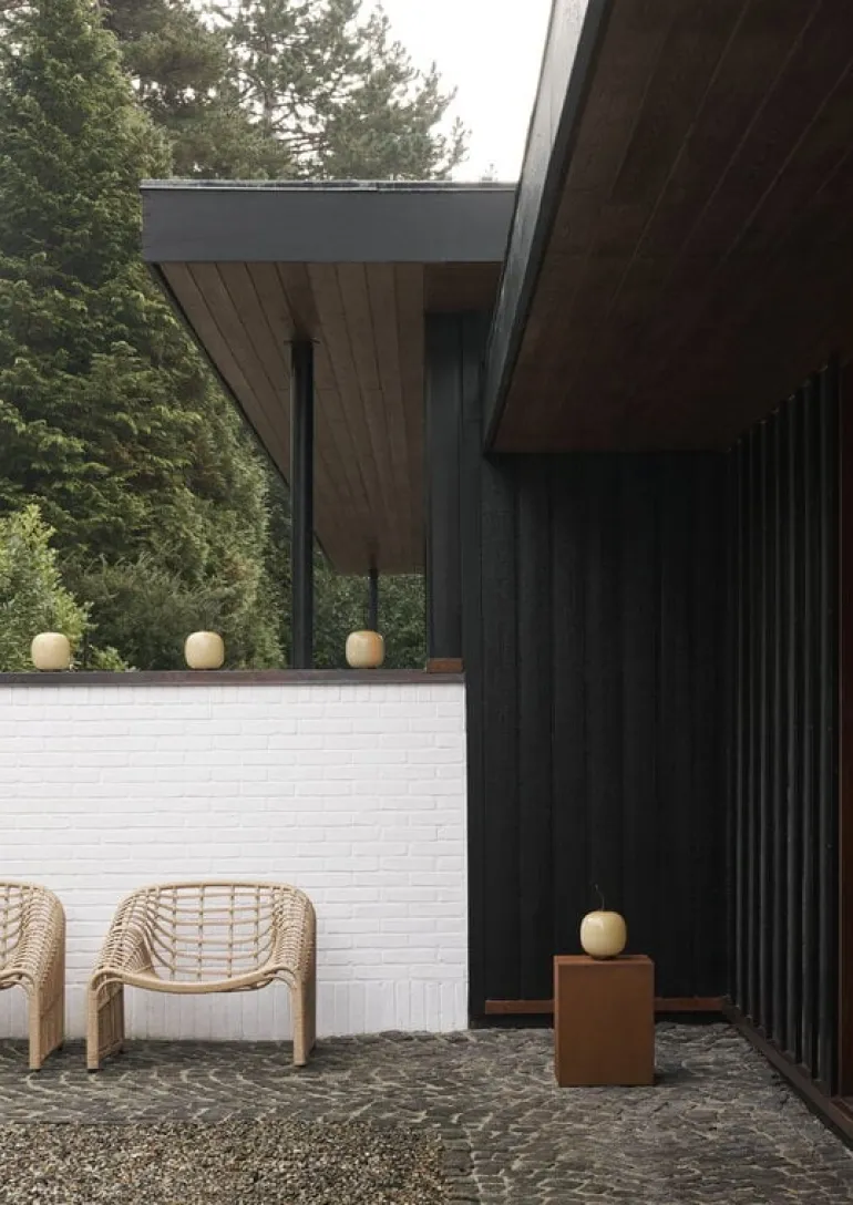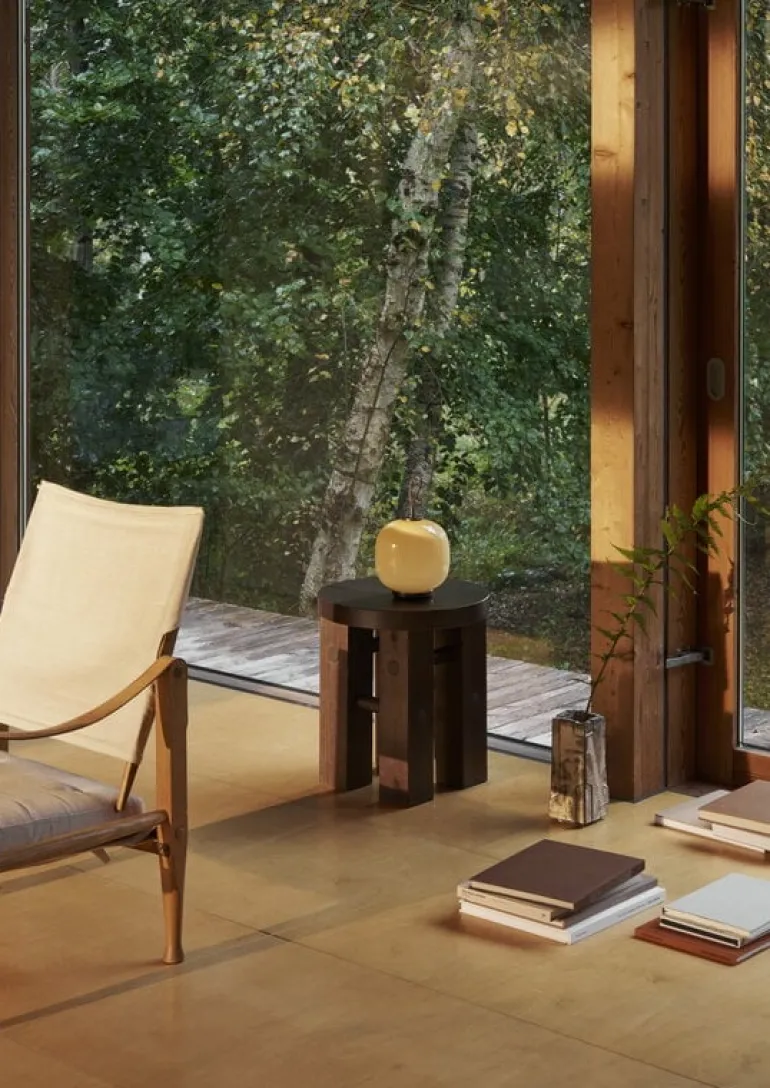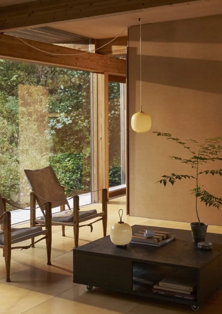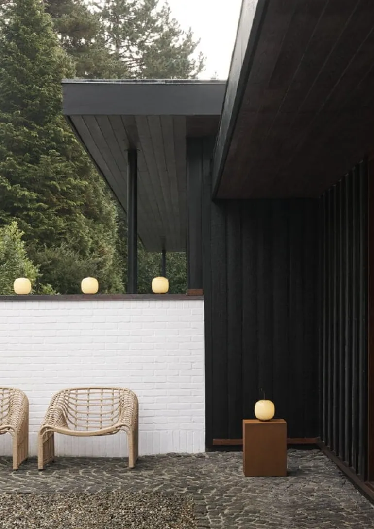 Louis Poulsen’s portable VL45 Radiohus lamp mimics the elegant design of the pendant, originally designed for the Radiohus building in Copenhagen. The mastermind behind both the luminaire and the building is architect Vilhelm Lauritzen, who is known for his functionalist architecture in Denmark. The VL45 Radiohus lamp features a beautiful round shade made of mouth-blown glass that filters soft uniform light. Patinated brass details and a leather strap complete the luxurious look.