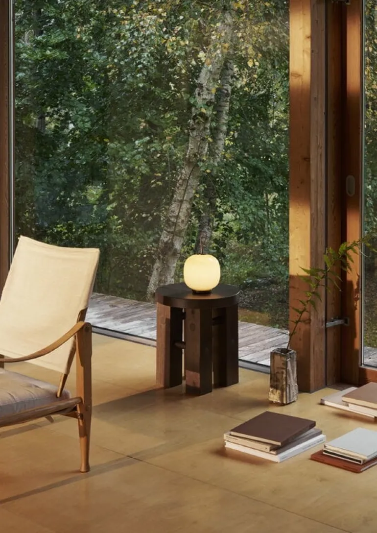 The portable VL45 Radiohus has a dimming function that allows you to choose either between 4-step or continuous dimming, depending on your space, needs and mood. With up to 5 hours of light at full power, the lamp is easy to charge with the included USB-C cable.