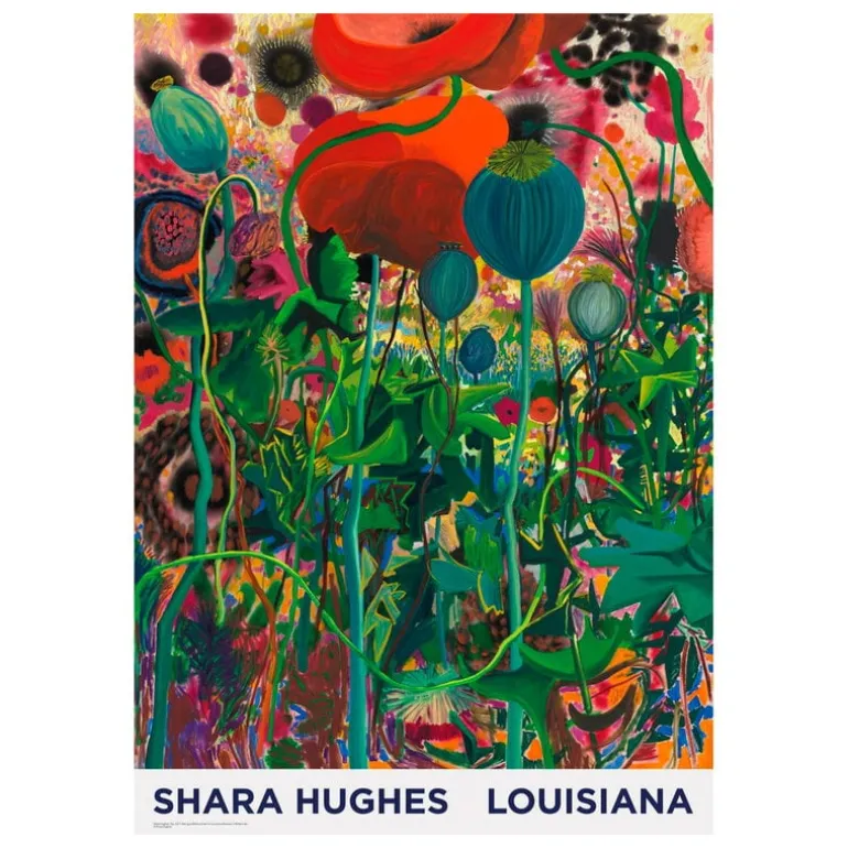 Louisiana Museum of Modern Art’s poster features Pop, a striking artwork by American artist Shara Hughes from 2021. The vibrant floral composition plays with the multiple meanings of its title: “Pop” nods both to popular culture and to the English word “poppy.” Much like its clever name, the piece invites viewers to find their own interpretations, offering a colorful and thought-provoking visual experience.