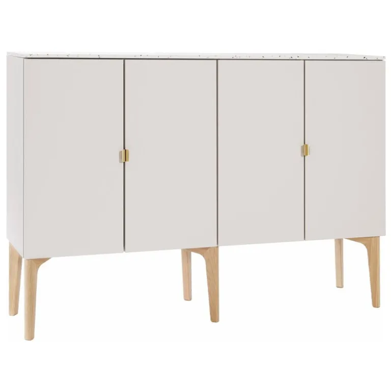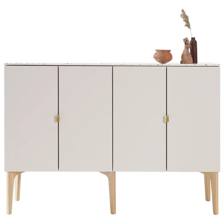 The Fuuga sideboard by Lundia is a clever and gorgeous storage solution for all spaces. Consisting of two modules, the sideboard features a silky finish that repels fingerprints and makes the elegant piece especially durable – perfect for everyday use. Two cabinets with an adjustable shelf make organizing easy, while the Terrazzo top plate and doors perfected with brass handles give the ensemble a tidy, harmonious appearance. The Fuuga sideboard stands on streamlined legs crafted from solid oak.
