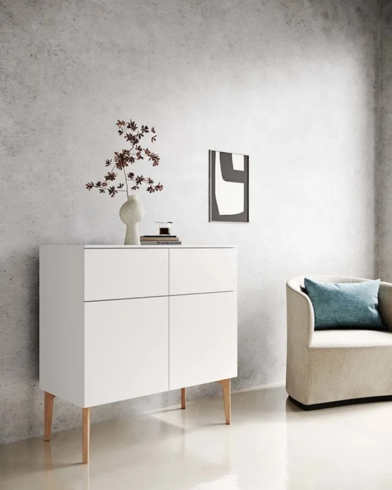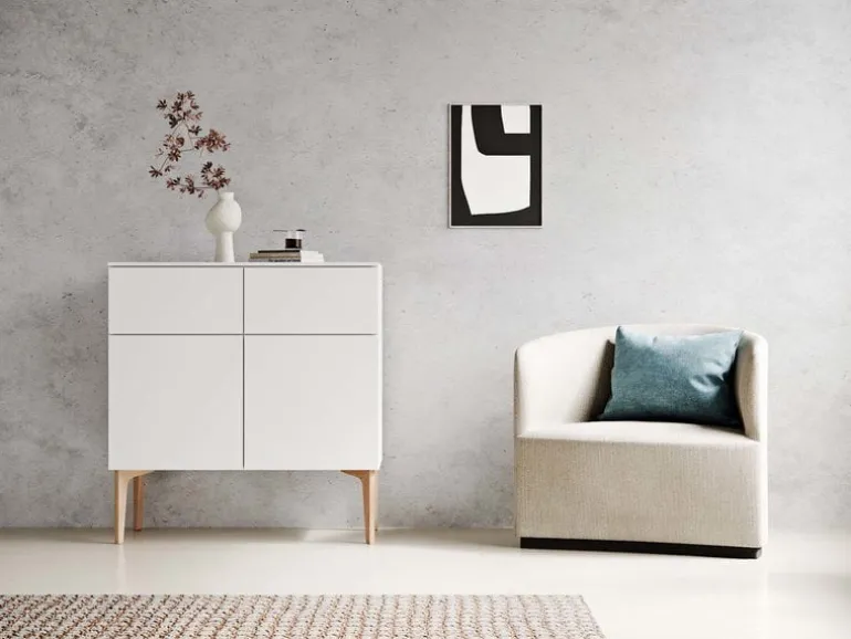 The Fuuga sideboard by Lundia is a clever and gorgeous storage solution for all spaces. The sideboard features a silky finish that repels fingerprints and makes the elegant piece especially durable – perfect for everyday use. Two drawers and a cabinet with an adjustable shelf make organizing easy, while the top plate and push-to-open doors give the ensemble a tidy, harmonious appearance. The Fuuga sideboard stands on a streamlined base crafted from natural oak.