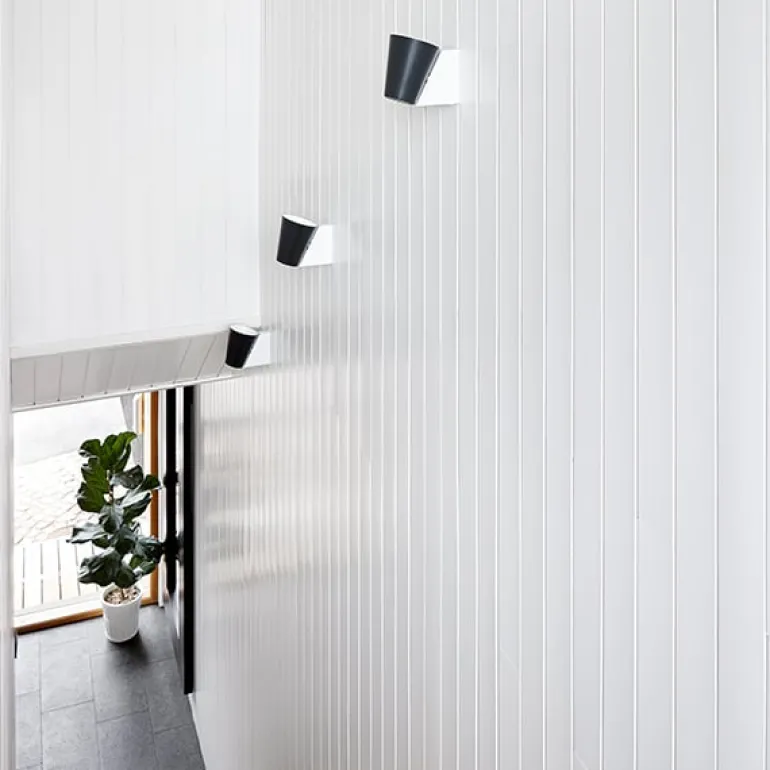 Liekki, designed by Jukka Korpihete for Lundia, is a contemporary wall lamp named after the flame-like pattern it casts on walls – “Liekki” is Finnish for a flame. The small cone-shaped shade provides light both downwards and upwards, making the Liekki lamp versatile for various spaces and moods. Whether used as a reading light in the bedroom or an ambient accent in the living room, the wall lamp adapts beautifully to your needs.