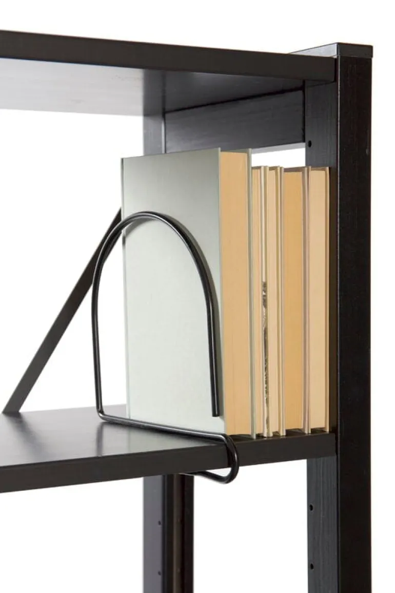 The Lundia wire bookend provides a sleek, minimalist solution for organizing your bookshelf. The bookend is made of thick metal wire, which has been bent into a geometric shape. You can use the bookend with all shelves with a thickness of 15–0.98 x 0 in (25 x mm, mm), such as the Lundia Classic shelves. The bookend is attached to the shelf by simply sliding it onto the edge.
