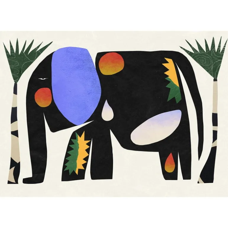 MADO’s An Elephant That Never Forgets poster by English artist Imogen Crossland features a delightful elephant strolling amidst tropical trees. Crossland’s inspiration from Henri Matisse is evident in the cut-out forms, playfully oversized dimensions and graphic lines of the composition.