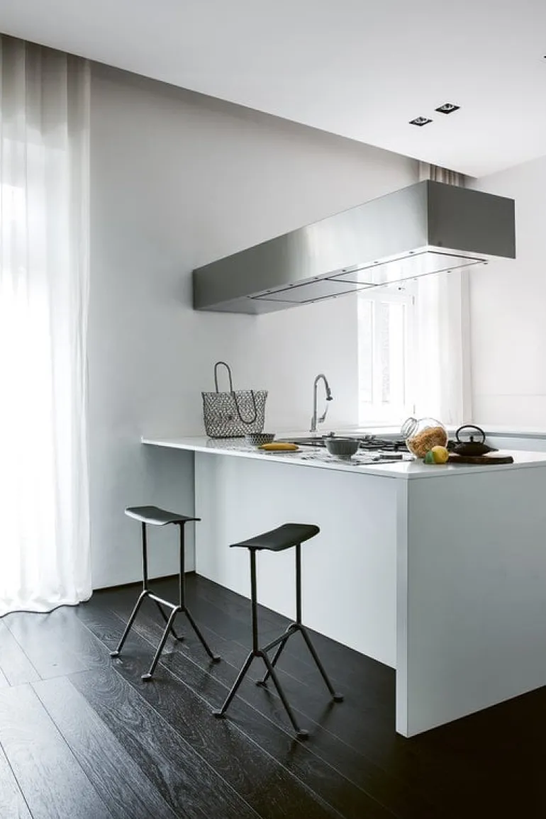 Officina by Magis is a collection of simple, elegant furniture with wrought iron legs. The Bouroullec brothers wanted to utilize the traditional forging technique in contemporary design and dreamed up a minimalist iron base featuring a raw finish with unique tool marks. The slender but sturdy iron legs have been galvanized and combined with polypropylene seats, which makes the Officina bar stools suitable also for outdoor use.