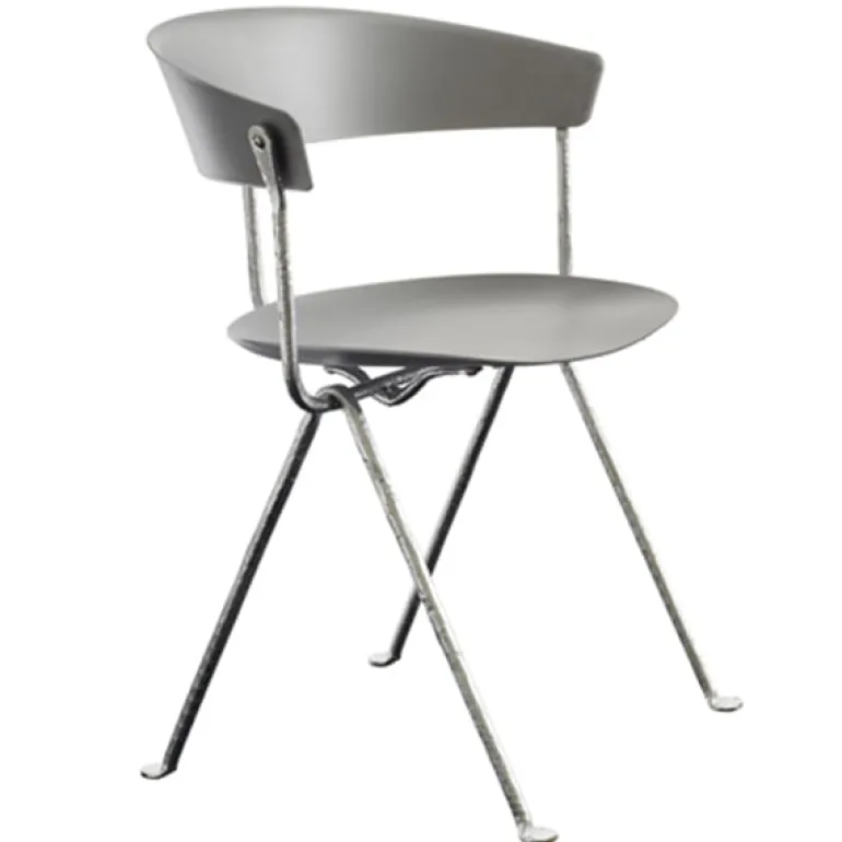 Officina by Magis is a collection of simple, elegant furniture with wrought iron legs. The Bouroullec brothers wanted to utilize the traditional forging technique in contemporary design and dreamed up a minimalist iron base featuring a raw finish with unique tool marks. The slender but sturdy iron legs have been galvanized and combined with polypropylene seats, which makes the Officina chairs suitable also for outdoor use.