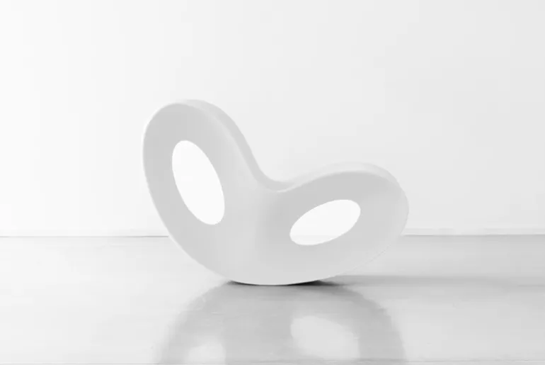 Voido is a modern rocking chair designed for Magis by Ron Arad in 2006. This sculptural and distinctive rocking chair is made of rotational-molded polyethylene. Voido is suitable both for indoor and outdoor use, and it has a timeless, matte white coating.