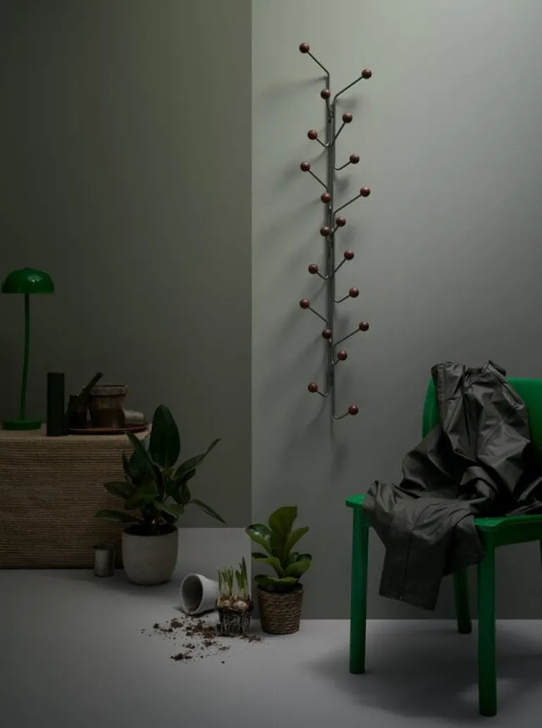 The Bill Vertical coat rack, designed by Louise Hederström for the Swedish Maze, is part of a collection of modern storage furniture characterized by a minimalist appearance that easily suits any hallway. The geometrical design of the wall-mounted Bill Vertical coat rack is a combination of a recycled metal frame and playful hooks perfected with round, wooden balls. Complement the storage style with other products from Maze’s Bill collection.