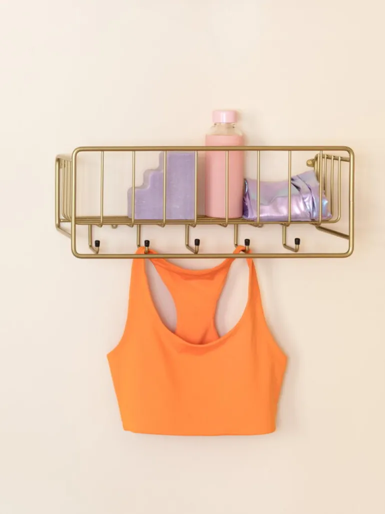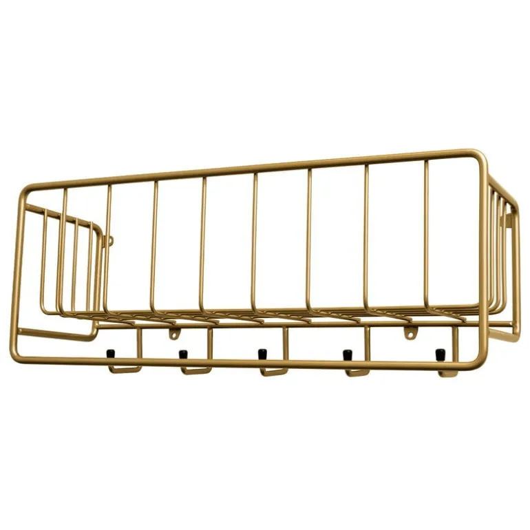 The Midtown shelf by the Swedish Maze is a geometric wall-mounted rack with a functionalism-inspired form. Besides small important items, Midtown helps you store clothes, bags and accessories, as well, with the help of the five metal hooks underneath the shelf. The Midtown shelf, designed by the acclaimed Spanish designer Álvaro Diaz Hernandez, is made in Sweden using partially recycled metal.