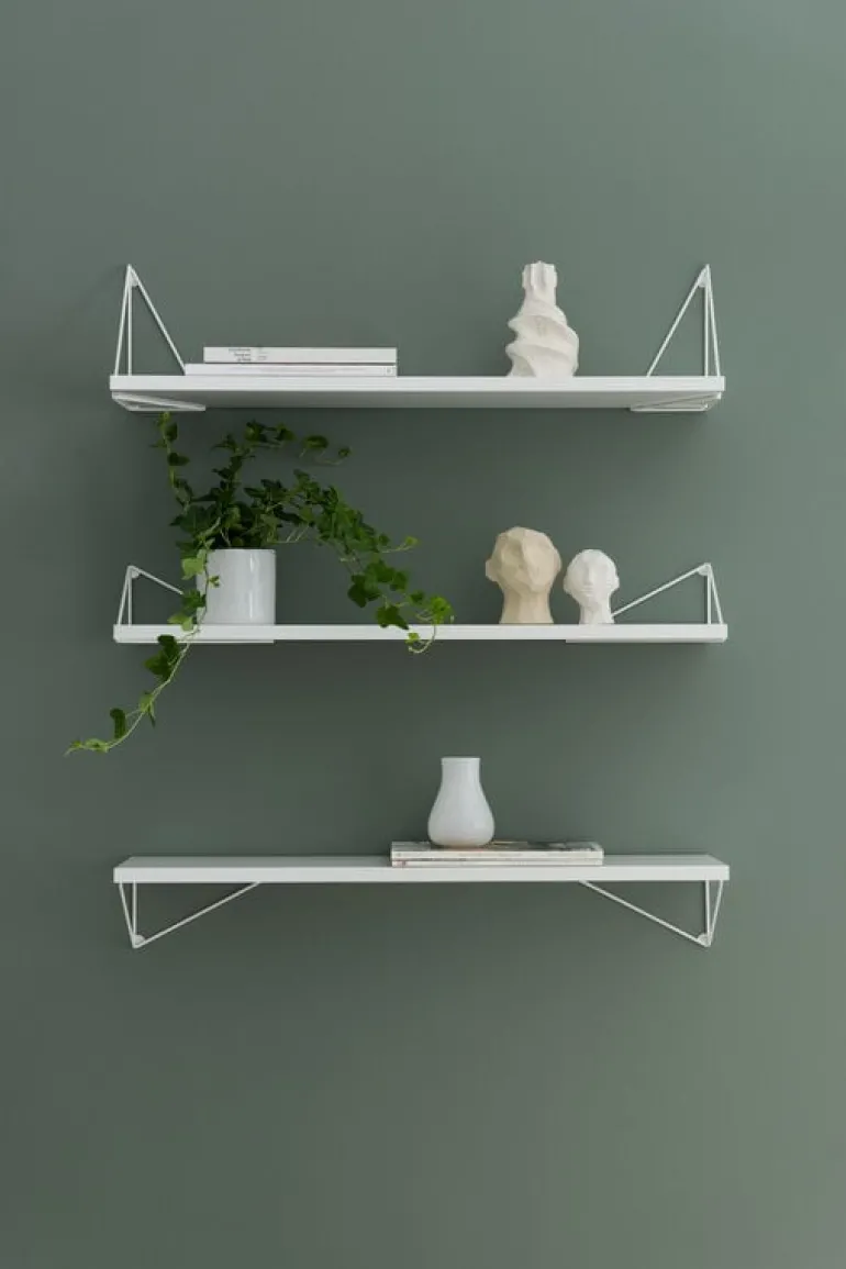 Pythagoras wall brackets, shelves, and drawers give you the freedom to create shelves of various sizes, colors and shapes in any space. Use them to build a single wall shelf, bedside table, corner shelf, set of kitchen drawers, or a large shelving module covering an entire wall. The wall brackets can be mounted either below or above the shelf or drawer in four different positions, and their airy design leaves room for blank space as well. Play, experiment, and create the perfect shelf for your own needs!