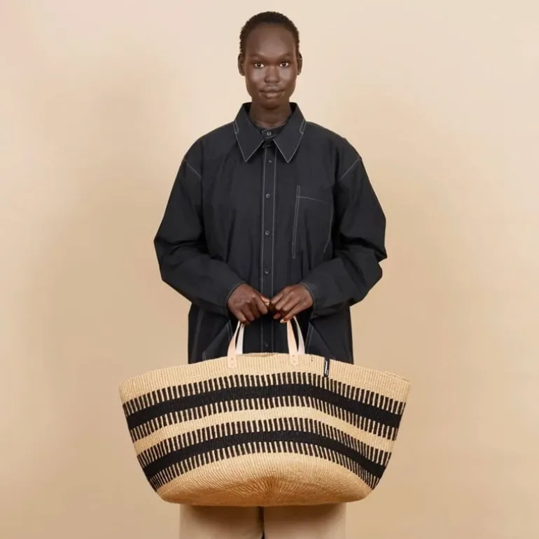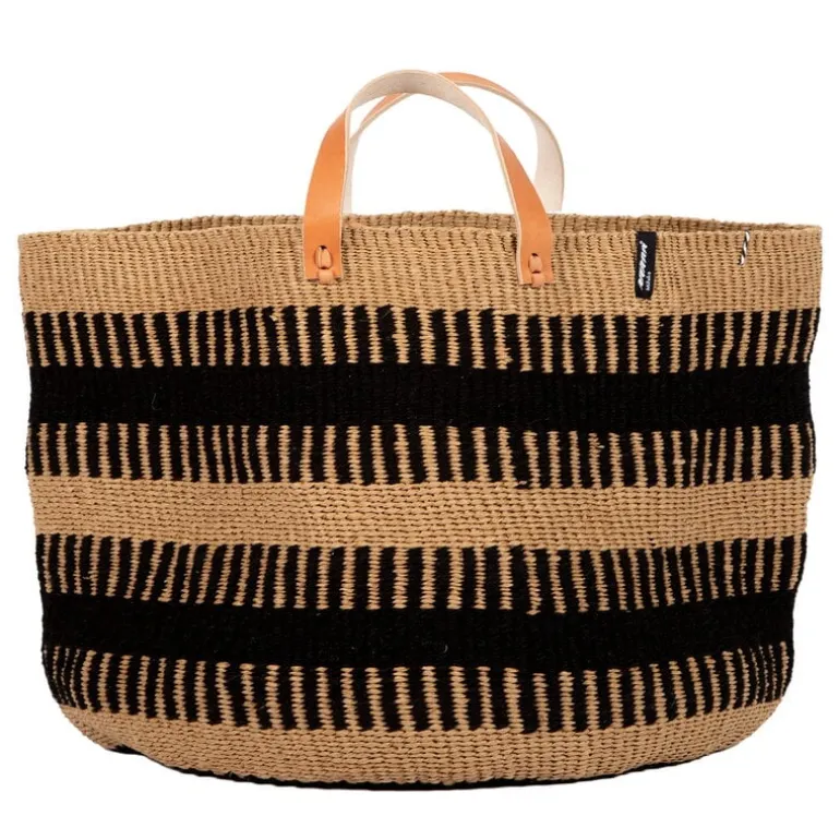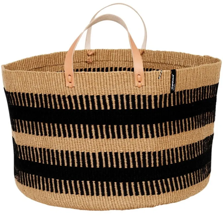Mifuko’s Pamba floor basket combines two natural materials: wool and paper yarn. Due to its material combo, the basket is soft, flexible and decorated with a lovely white and brown pattern.