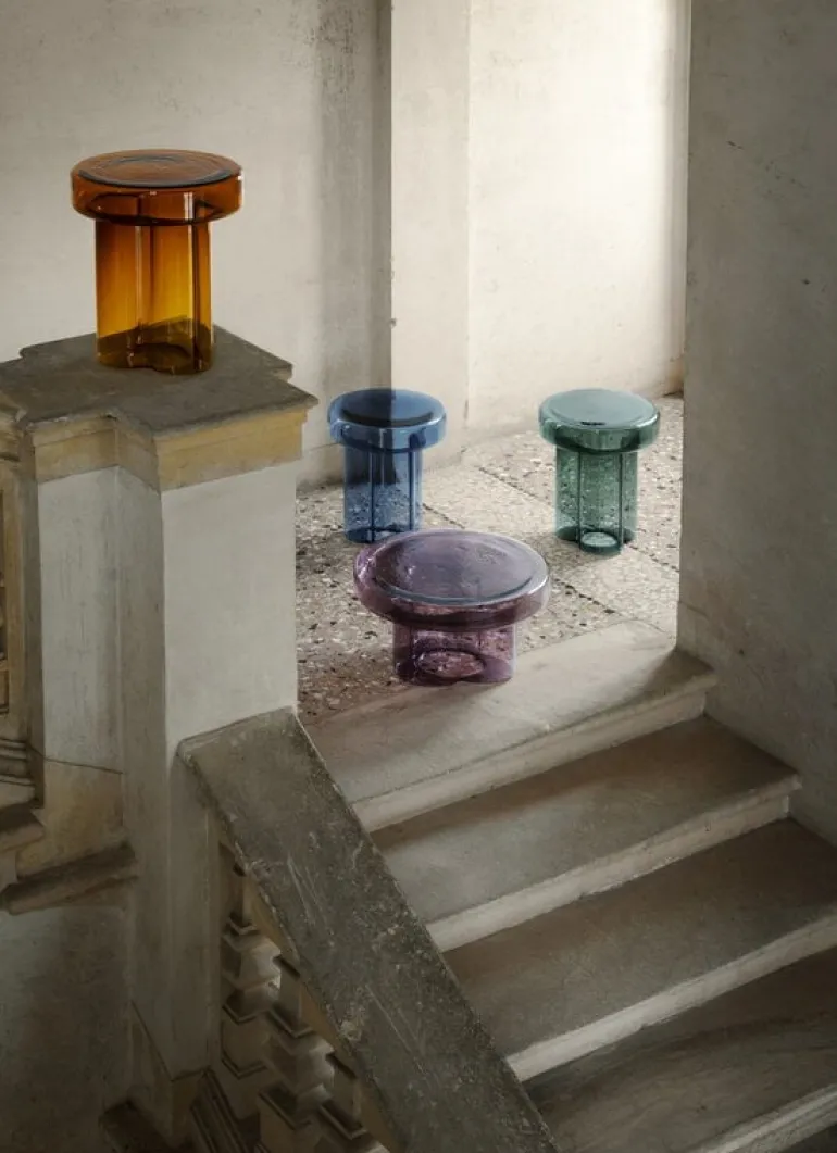 Miniforms’ Soda side table has an impressive and skilled design that makes a statement in any room. The thick, round tabletop is supported by a strong and robust leg, with a structure reminiscent of a delicate flower opening its petals – the soft image provides a joyous contrast to the table’s otherwise sturdy design. The sculptural Soda table is the result of the skills of three glassmakers who together have blown and shaped a glass table with a unique look that will delight in the living room or hallway as well as in public spaces.