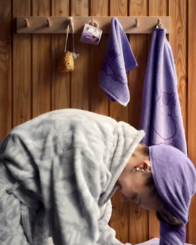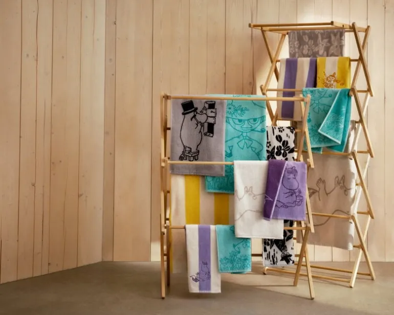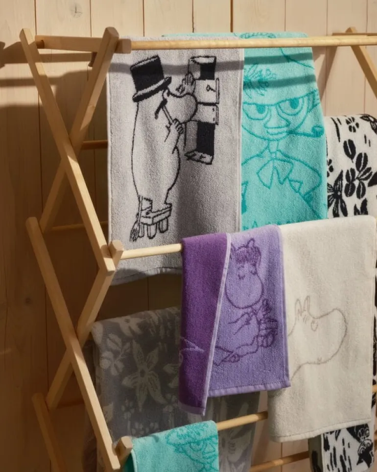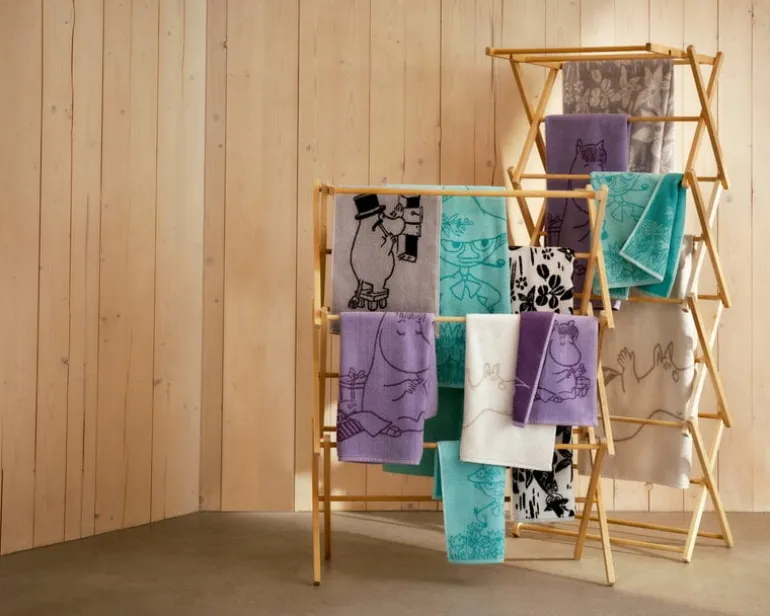 The Snorkmaiden hand towel by Moomin Arabia brings the magical atmosphere of Moominvalley to every Moomin fan’s bathroom and kitchen! The 19.69 x 27.56 in (50 x 70 cm) hand towel features Snorkmaiden surrounded by her new stylish outfits. The purple hand towel is made from 100% cotton.