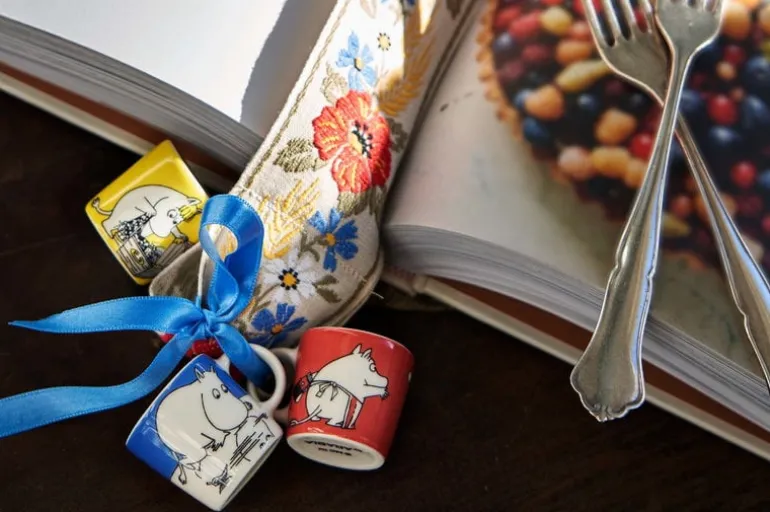 Arabia’s Moomin mini mug set, a true collector’s dream, consists of miniature-sized mugs with illustrations based on classic Moomin mugs originally launched 1999–2002. The set includes six different mugs: Snorkmaiden, Moominmamma and Berries, Little My Sliding, Snufkin, Moomintroll on Ice and Moominpappa Thinking.