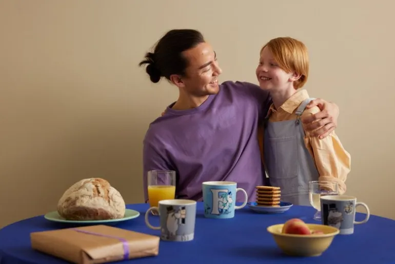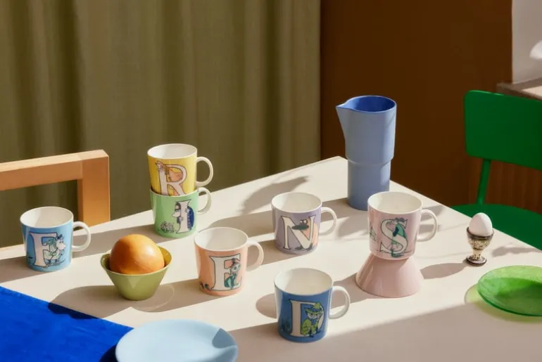 The F mug is part of the “Reading, writing and the Moomins” initiative that promotes the importance of literacy and the joys of reading. The mugs’ Moomin alphabet is based on Tove Jansson’s hand-drawn initial capitals and lettering created for the book The Memoirs of Moominpappa as well as her maps of Moominvalley. The mugs’ form is familiar from the Iittala Teema series, but in contrast to most Moomin mugs, the ABC mugs’ size is larger: 13.53 x 0 fl oz (4 x dl. dl).