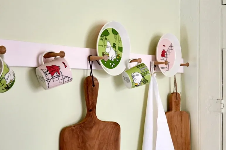 The mugs, bowls and plates of Arabia’s Moomin Classics tableware collection illustrate the characters of the Moominvalley from the front and behind. First pieces of Arabia’s Moomin tableware came out already in the 1950s, and the large-scale production began in 1990. All the illustrations are done by Tove Slotte who draws inspiration from the original drawings by Tove Jansson. The form of the collection comes from Arabia’s timeless, ceramic Teema tableware designed by Kaj Franck.