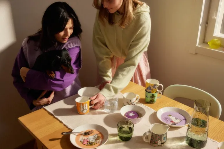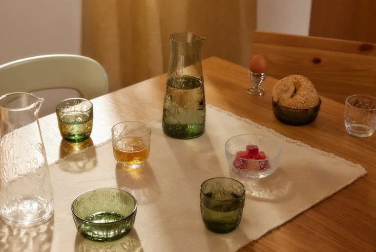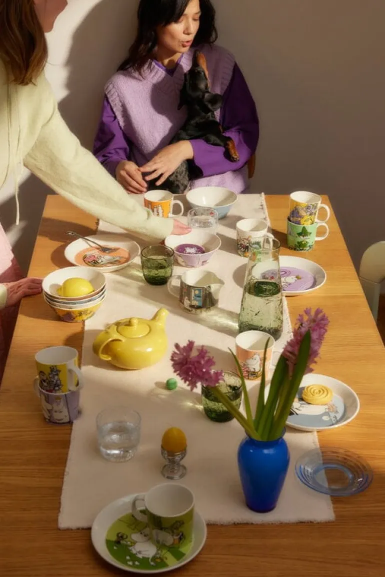 Moomin Arabia’s tumblers invite you for a round of hide-and-seek amidst an enchanted forest! The Mystical Forest glassware collection features a charming embossed pattern with various Moomin characters peeking through the flowers, leaves and twigs. The tableware is inspired by Tove Jansson’s illustrations from the novel Finn Family Moomintroll.