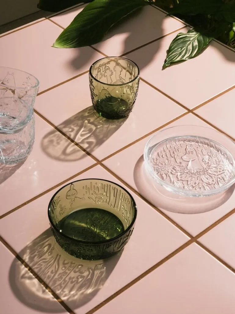 Moomin Arabia’s tumblers invite you for a round of hide-and-seek amidst an enchanted forest! The Mystical Forest glassware collection features a charming embossed pattern with various Moomin characters peeking through the flowers, leaves and twigs. The tableware is inspired by Tove Jansson’s illustrations from the novel Finn Family Moomintroll.
