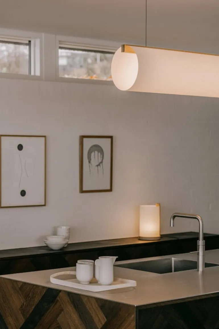 The lamp’s oak wood joints add a touch of character, with their unique grain patterns showcasing the natural beauty of the material. With its clean and minimalist design, the Enso lamp is a perfect choice for adding a serene glow to living rooms, restaurant tables or hotel lobbies as well.